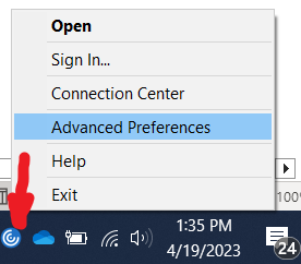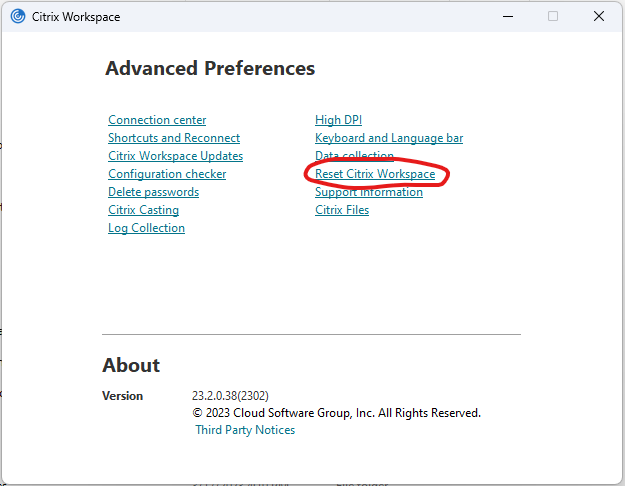 If you notice a white screen when you try to login to the Citrix, please right click on the Citrix’s icon at the bottom of the toolbar (bottom right of the screen – an icon with a blue-white circle) and